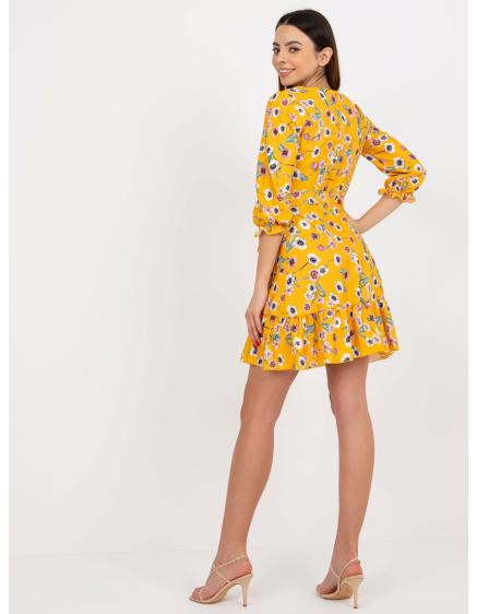 Dámské šaty s volánky mini koktejlové LARISA žluté