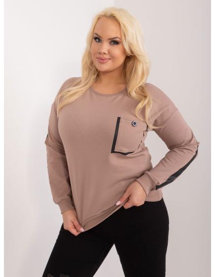 Dámská halenka plus size s kapsičkou s nášivkou tmavě béžová