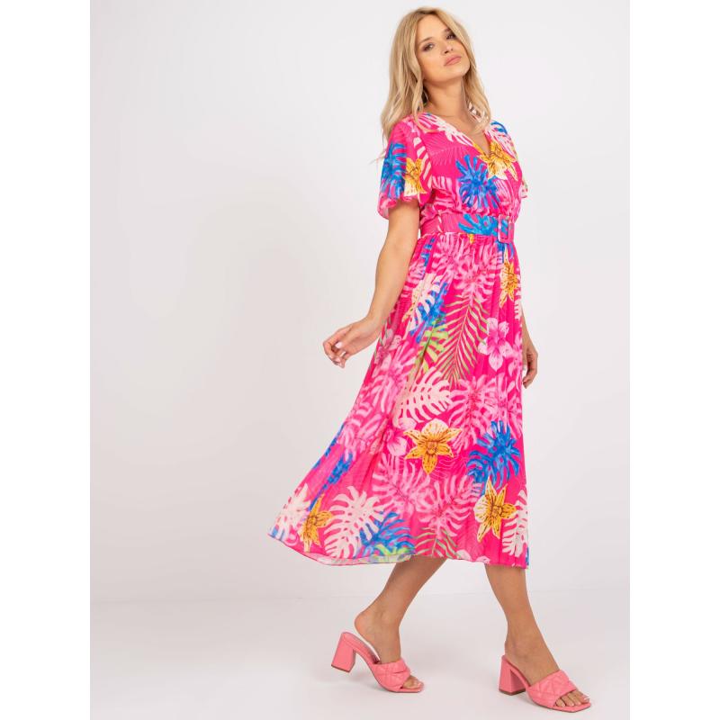 Női nyomtatott pliszírozott midi ruha IDEA rózsaszín
