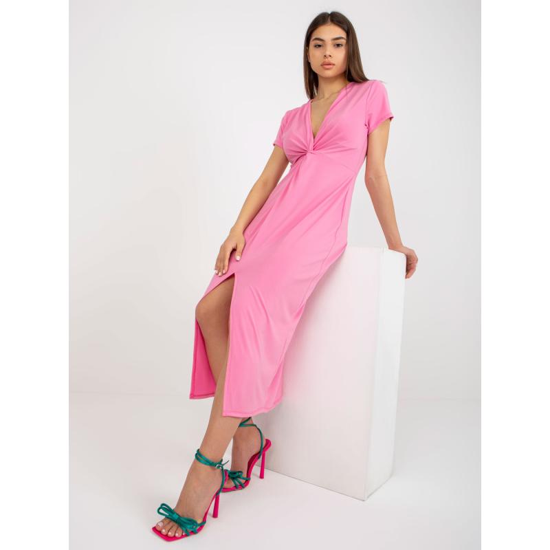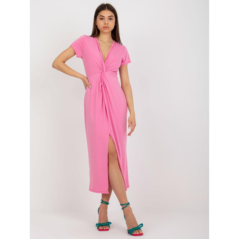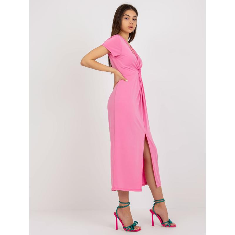 Dámske šaty s rázporkom midi koktailové ZDENKA ružové