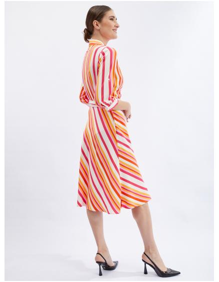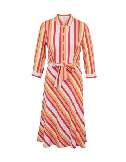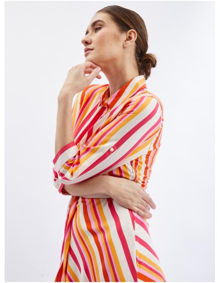 Červeno-oranžové dámské pruhované košilové šaty