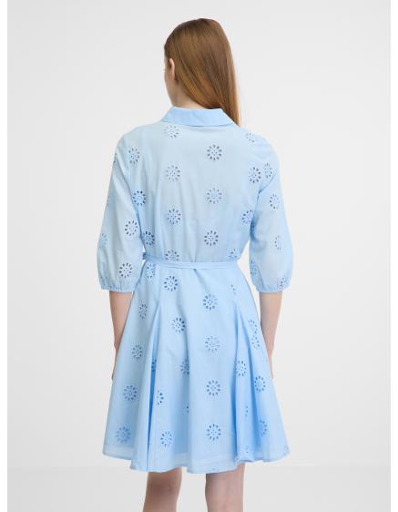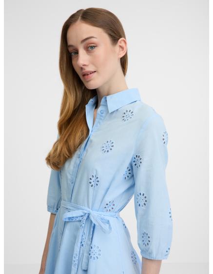Modré šaty OCH BELLA z bavlněné příze s jemným žíháním