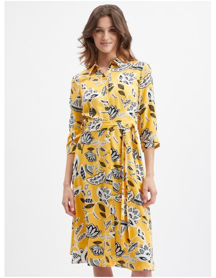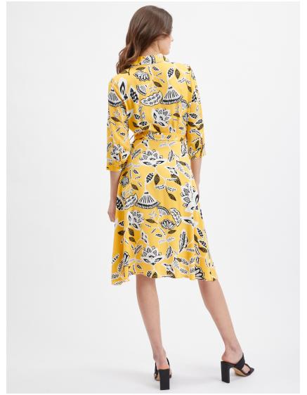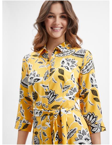 Dámské šaty s volánem volné květované SUBLEVEL žluté