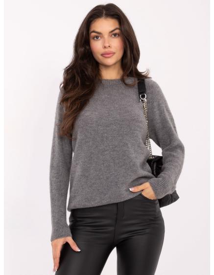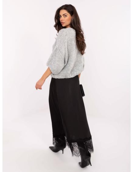 Světle šedý dámský bouclé svetr s 3/4 rukávy
