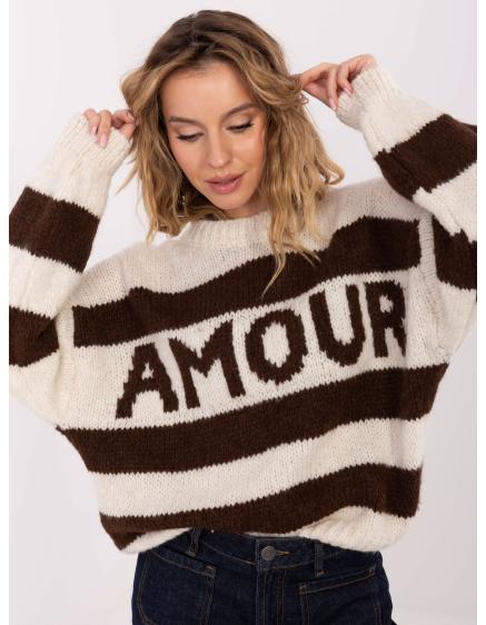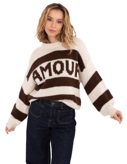 Hnědo-ecru oversize svetr s kulatým výstřihem
