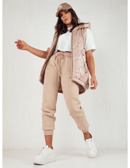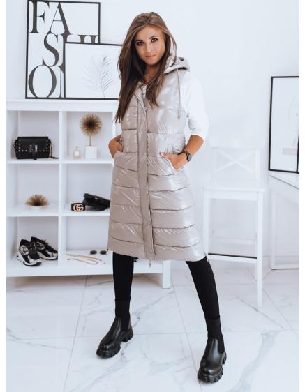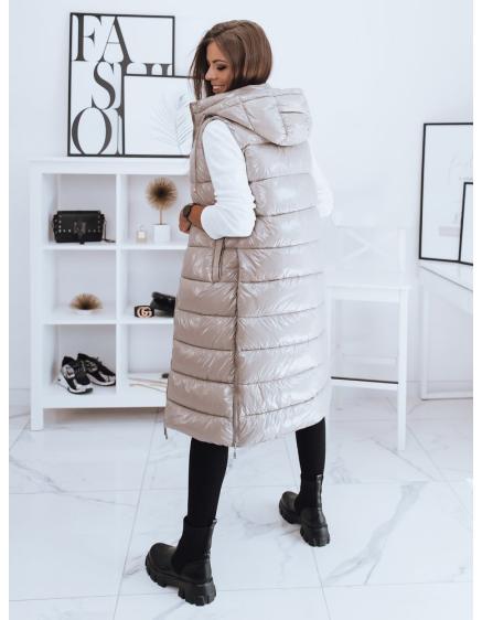 Dámská prošívaná dlouhá vesta s kapucí COSYVIVA béžová