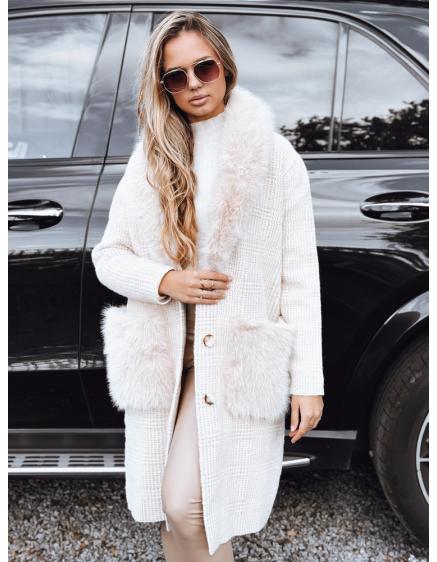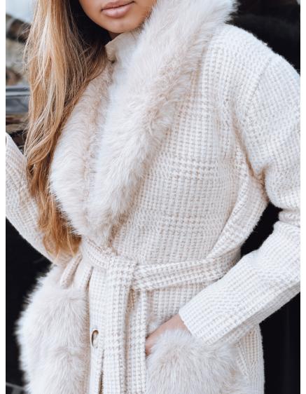 Dámský kabát s kožešinou béžový