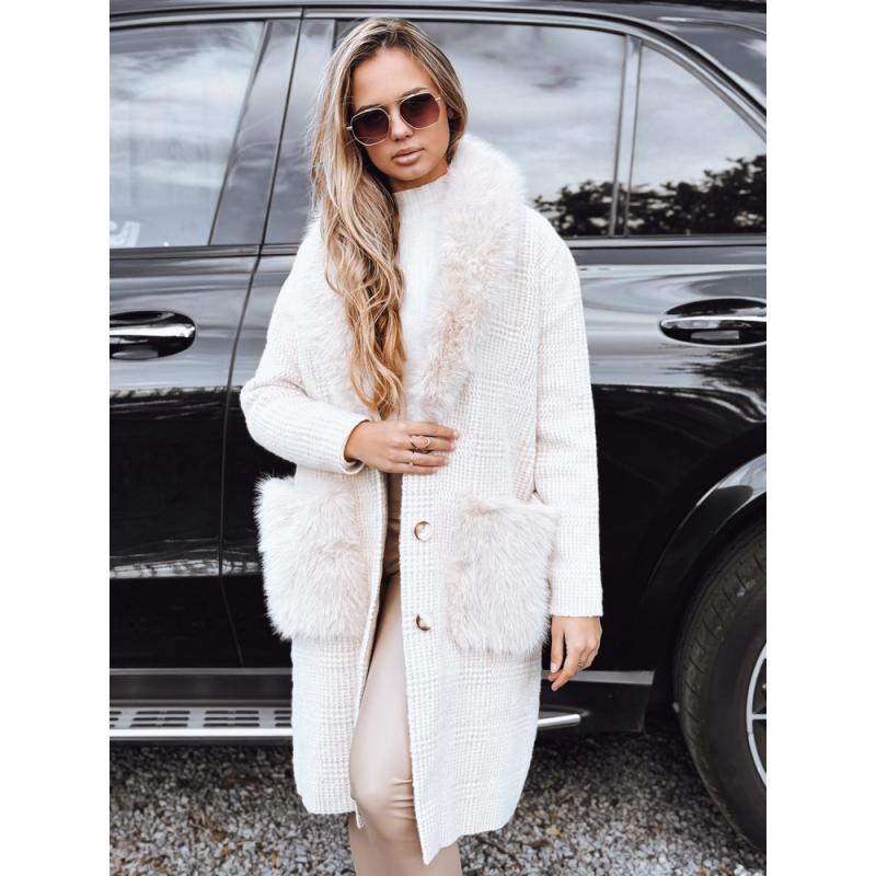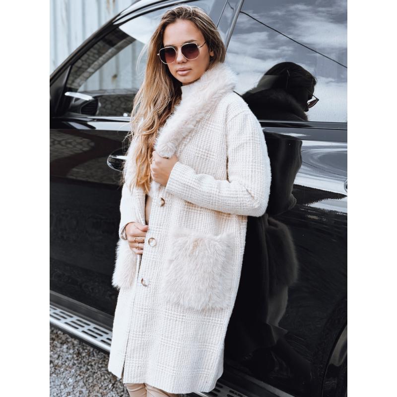 Dámský kabát s kožešinou béžový
