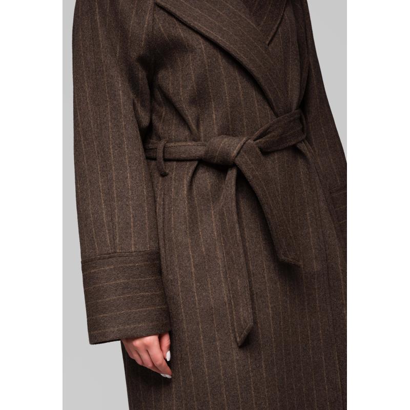 Dámský kabát s pruhy LARICA OW-COLC-0105 v1 – hnědý