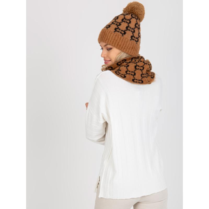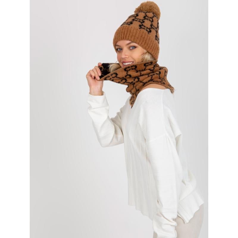 Dámská zimní čepice s bambulí BRYLEE hnědo černá
