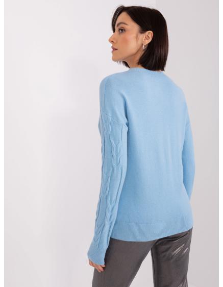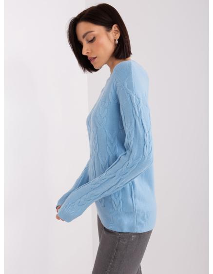 Trendy kousek oblečení, který zahřeje. To je přesně Dámský svetr nadměrné velikosti s kosticemi světle modrý .