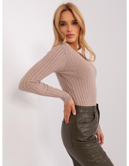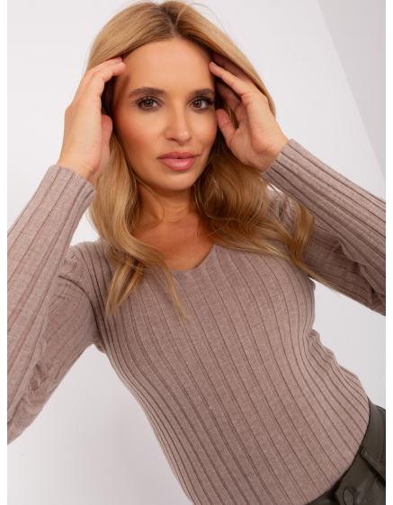 Trendy kousek oblečení, který zahřeje. To je přesně Dámský svetr plus size s viskózou tmavě béžový .