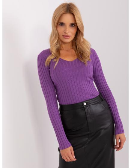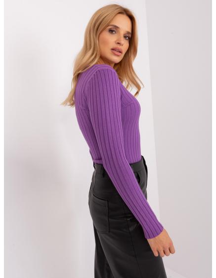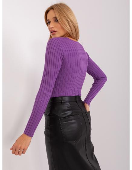 Trendy kousek oblečení, který zahřeje. To je přesně Dámský svetr s knoflíky u výstřihu plus size ELDTA fialový  .