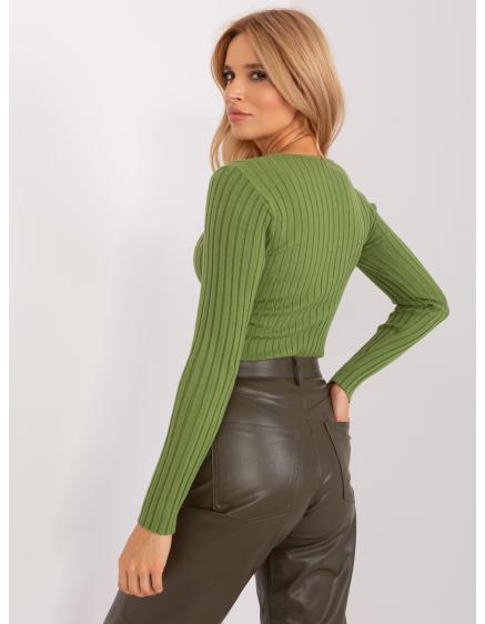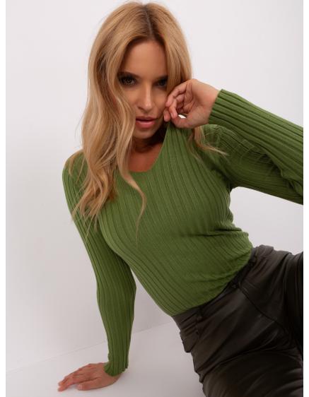 Trendy kousek oblečení, který zahřeje. To je přesně Dámský svetr s průstřihem EVESO zelený .