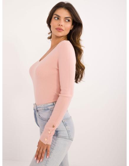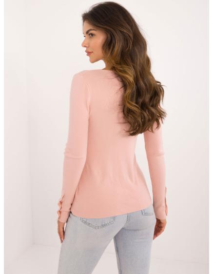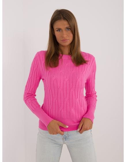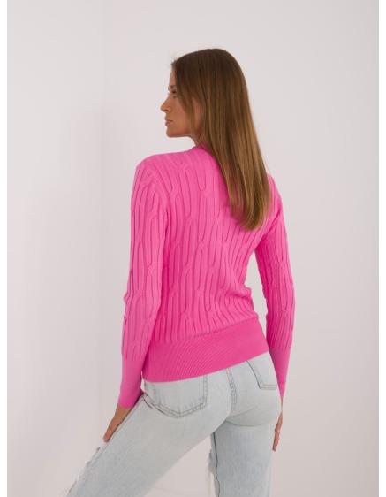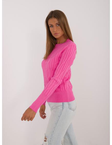 Dámský svetr s rolákem a prolamovaným vzorem růžový