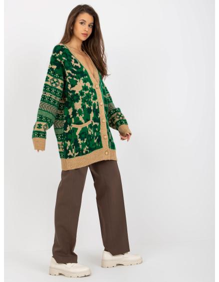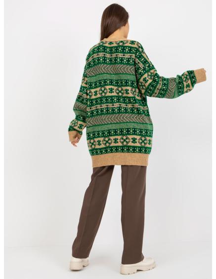 Trendy kousek oblečení, který zahřeje. To je přesně Dámský svetr se širokými pruhy oversize SWOZ zelený a ecru .