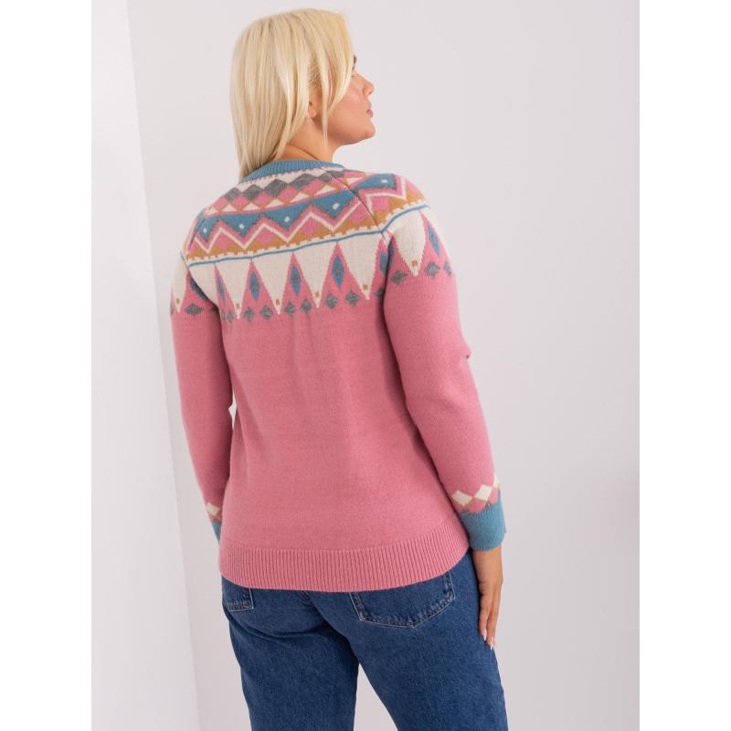 Trendy kousek oblečení, který zahřeje. To je přesně Dámský svetr se vzory plus size UENA růžový .