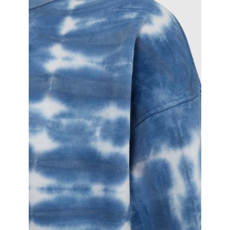 Dětská mikina.Modrá batika pro originální vzhled.Oblékání přes hlavu.Dlouhé rukávy zakončené náplety. 79 % bavlna, 11 % polyester, 10 % recyklovaný polyester