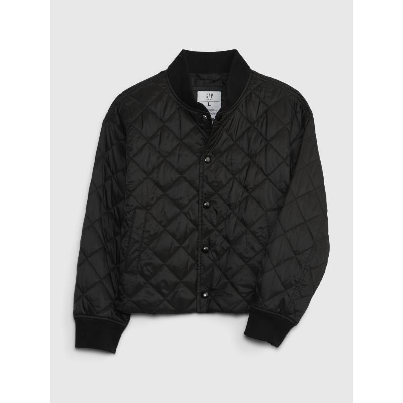 Dětská bunda.Ozdobně prošívaná a s kapsami.Zapínání na patentky.U krku stojáček z pružného nápletu.Rukávy s náplety a rovný střih. 100 % recyklovaný polyester