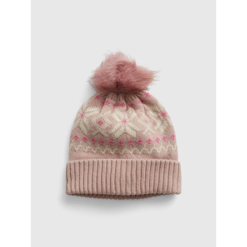 Dětská zimní čepice. Vzorovaná a s bambulí. Ohrnutý žebrovaný lem. 100 % akryl