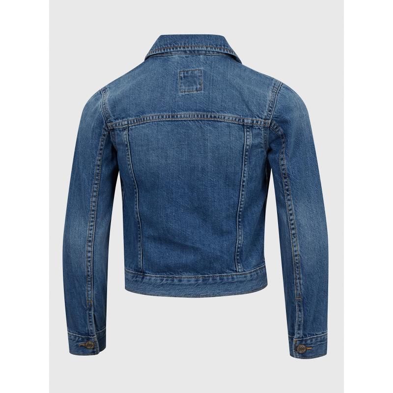 Dívčí džínová bunda.Klasický střih se zapínáním na kovové knoflíky.U krku límeček.Na hrudi 2 kapsy s klopami.Šikmé boční kapsy.Dlouhé rukávy s manžetou.100% bavlna. 95 % bavlna, 5 % recyklovaná bavlna