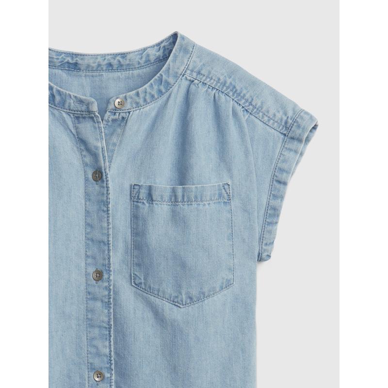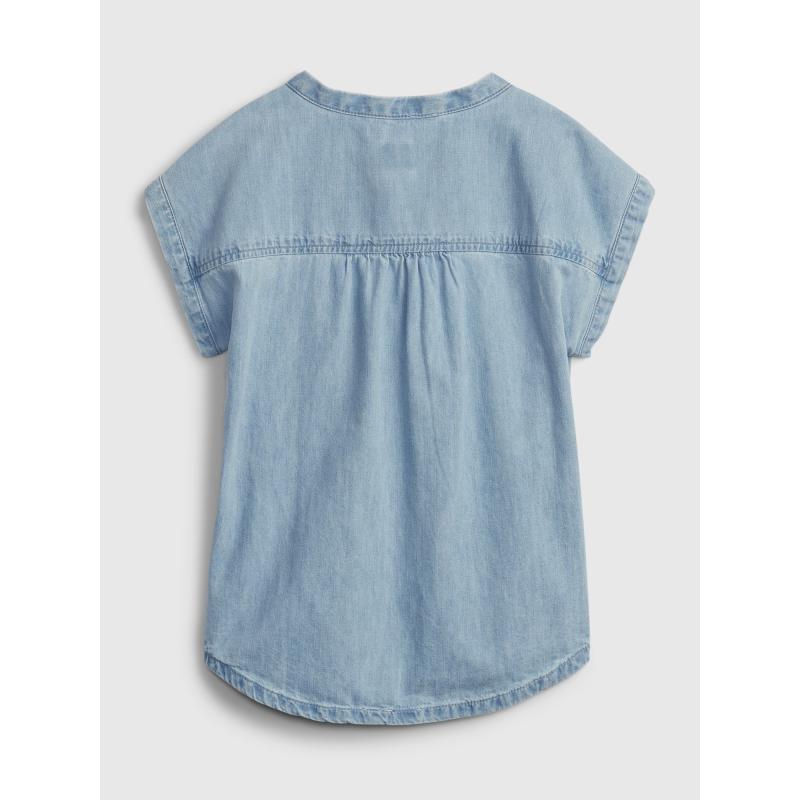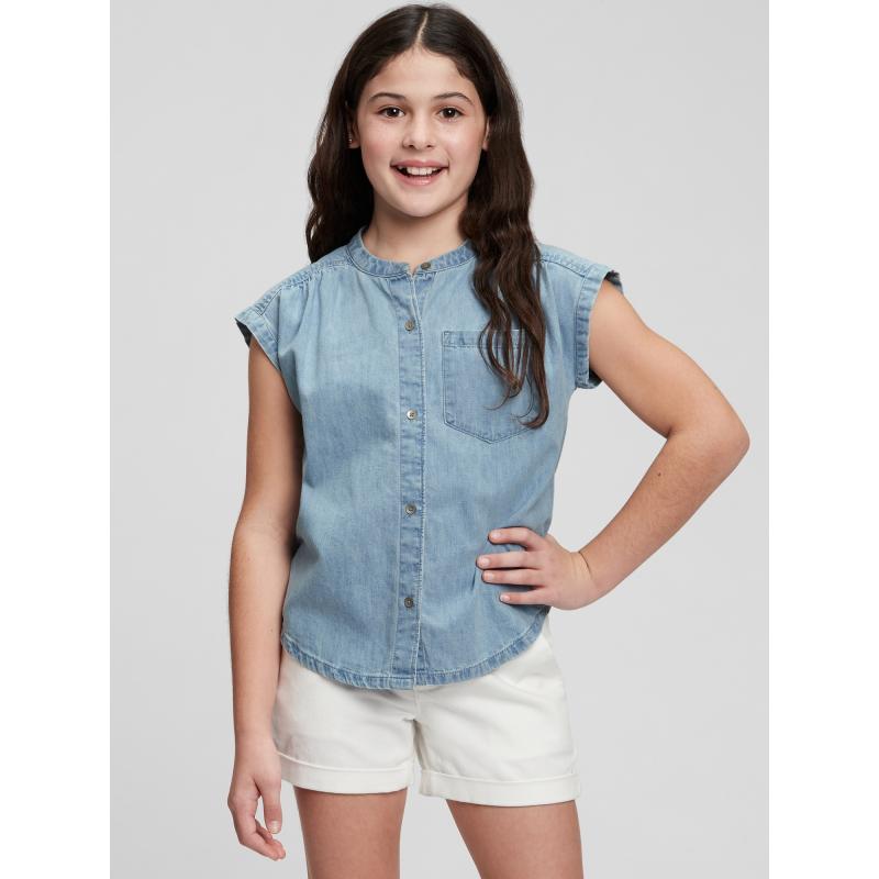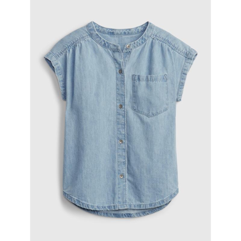 Dívčí džínová košile.Měkký denim.Zapínání na knoflíčky.Krátké spadlé rukávy.Náprsní kapsička.100% bavlna. 100 % bavlna