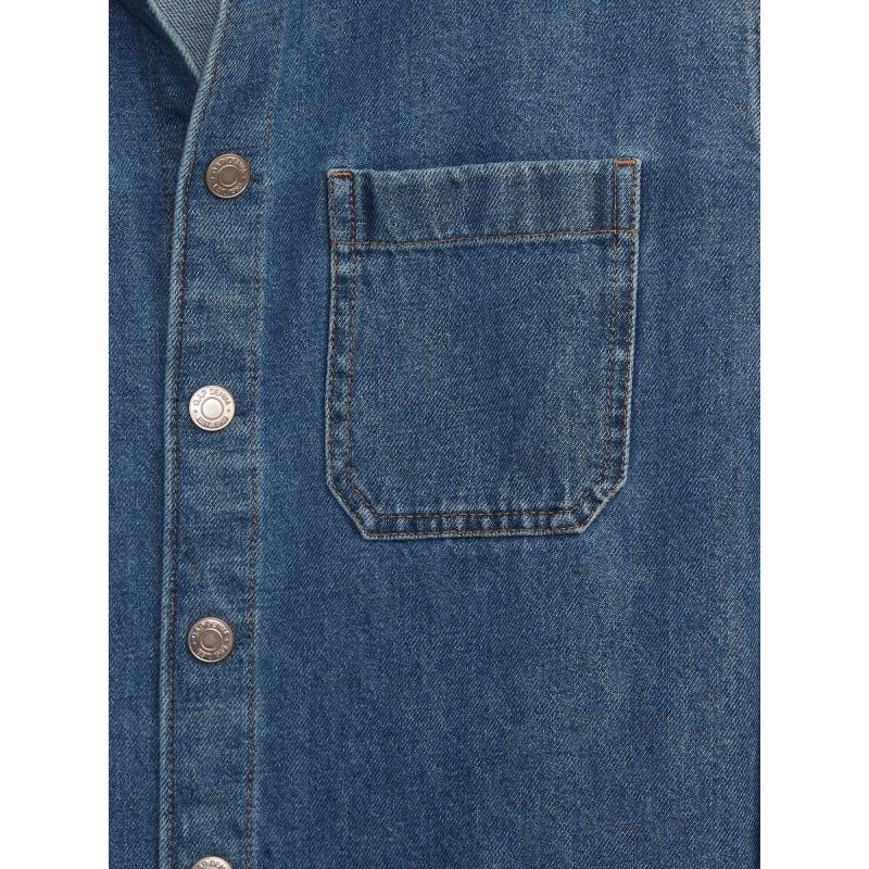 Dětská džínová košilová bunda ze 100% bavlny.Límeček a zapínání na kovové knoflíky.Na hrudi našité dvě kapsy.Dlouhé rukávy s manžetou.Zaoblený spodní lem.Volný střih oversize. 100 % bavlna