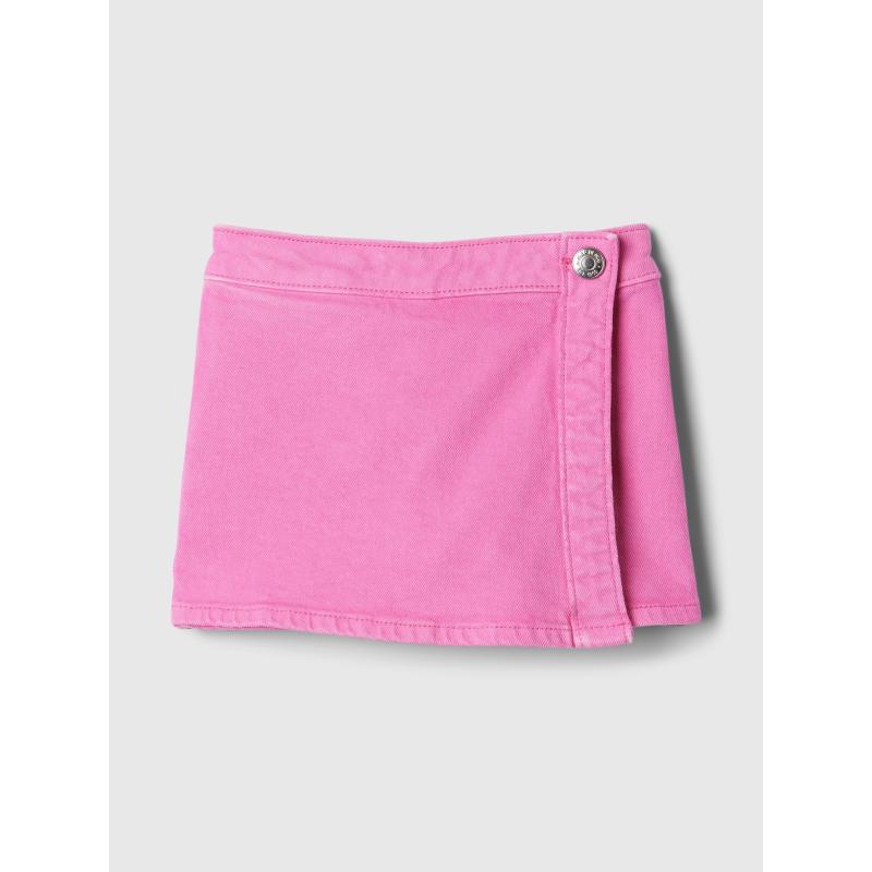 Dívčí džínová kraťasová sukně.Pružný pas se zapínáním na knoflík.V zadní části našité kapsy.Bavlněná s elastanem. 94 % bavlna, 5 % recyklovaná bavlna, 1 % elastan