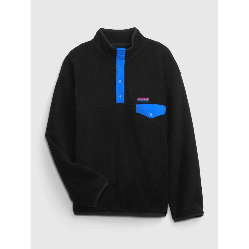 Dětská fleece mikina přes hlavu.U krku stojáček a zapínání na patentky.Na hrudi malá kapsička s klopou.Kombinace dvou materiálů.25% recyklovaný polyester.Oblečení označené jako Gap for Good je vyrobeno s ohledem k naší planetě, a proto používáme přírodní nebo recyklované materiály a zároveň se snažíme snížit dopad výroby na vodní zdroje. Více se dozvíte na Gap for Good. 75 % polyester, 25 % recyklovaný polyester