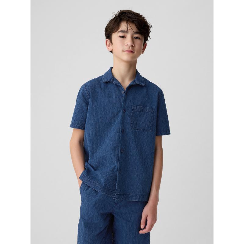 Dětská bavlněná košile oxford.Krátký rukáv a rovný střih.Límeček a zapínání na knoflíčky.Na hrudi našitá kapsička. 100 % bavlna