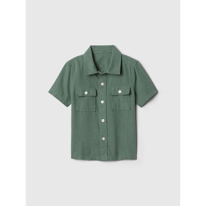 Dětská košile ve stylu utility.Límeček a zapínání na knoflíky.Našité velké kapsy s klopou.Krátký rukáv a rovný střih. 100 % bavlna