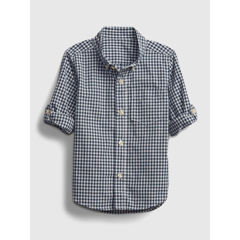 Dětská kostkovaná košile. Zapínání na knoflíčky. Na hrudi našitá malá kapsička. Rolovací rukávy. Límeček se zapínáním na knoflíčky. 100% bavlna. 100% bavlna