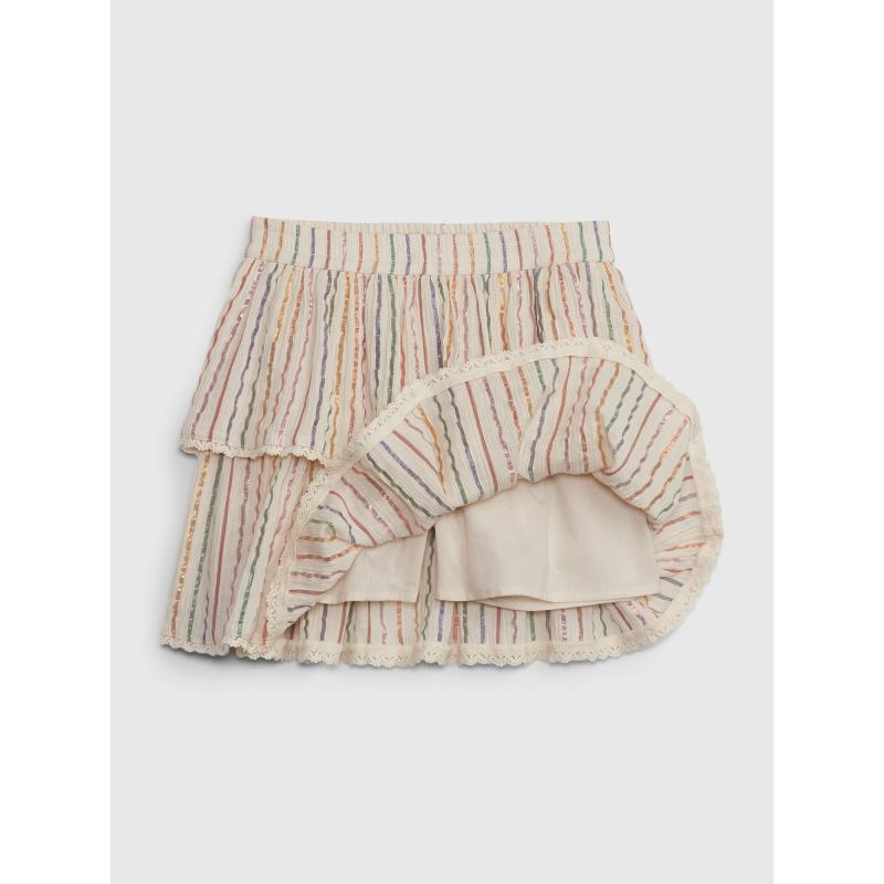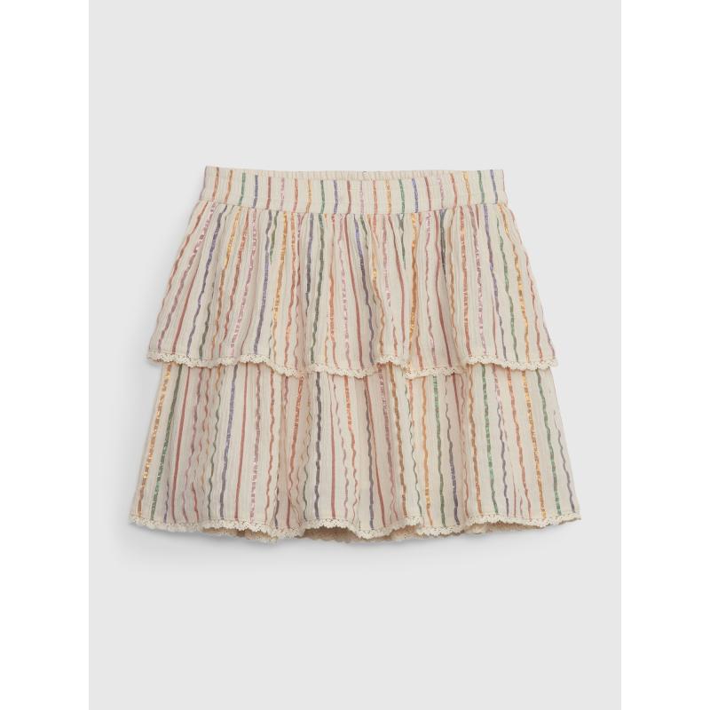 Dětská volánová sukně.Všité šortky a pružný pas.Pruhovaný vzor.Měkký a vzdušný mušelín.Střih do A. 100 % bavlna