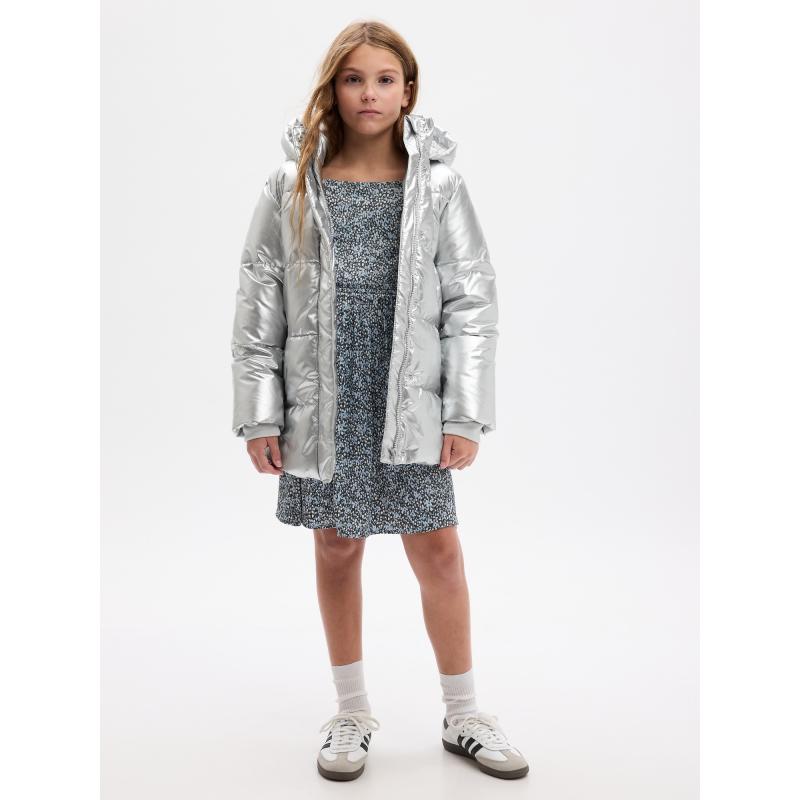 Dívčí zimní prošívaná bunda.Metalická barva.Se zapínáním na zip.U krku vysoký stojáček a kapuce.Přední šikmé kapsy.Oblečení označené jako Gap for Good je vyrobeno s ohledem k naší planetě, a proto používáme přírodní nebo recyklované materiály a zároveň se snažíme snížit dopad výroby na vodní zdroje. Více se dozvíte na Gap for Good. 100 % recyklovaný polyester