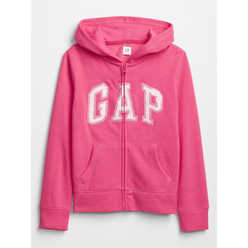 Dívčí mikina s logem GapRůžová mikina se zapínáním na zip, dlouhé rukávy s žebrovaným nápletem, kapuce, kapsyVelmi měkký úplet z bavlny a polyester. 77 % bavlna, 23 % polyester