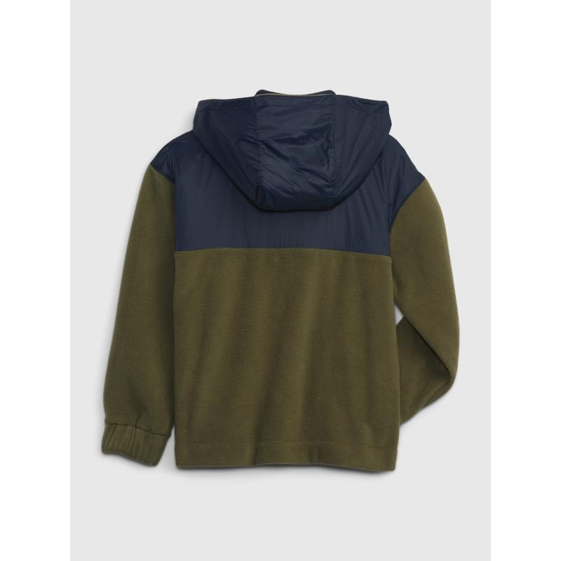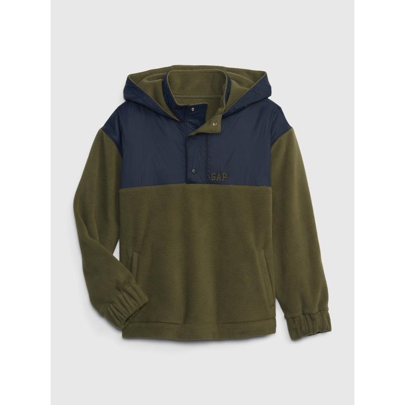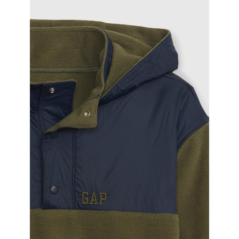 Dětská fleecová mikina s kapucí.Střih přes hlavu.U krku stojáček a kapuce.Zapínání na 3 patentky.Přední šikmé kapsy.Dlouhé rukávy s pružným lemem.Oblečení označené jako Gap for Good je vyrobeno s ohledem k naší planetě, a proto používáme přírodní nebo recyklované materiály a zároveň se snažíme snížit dopad výroby na vodní zdroje. Více se dozvíte na Gap for Good. 75 % polyester, 25 % recyklovaný polyester