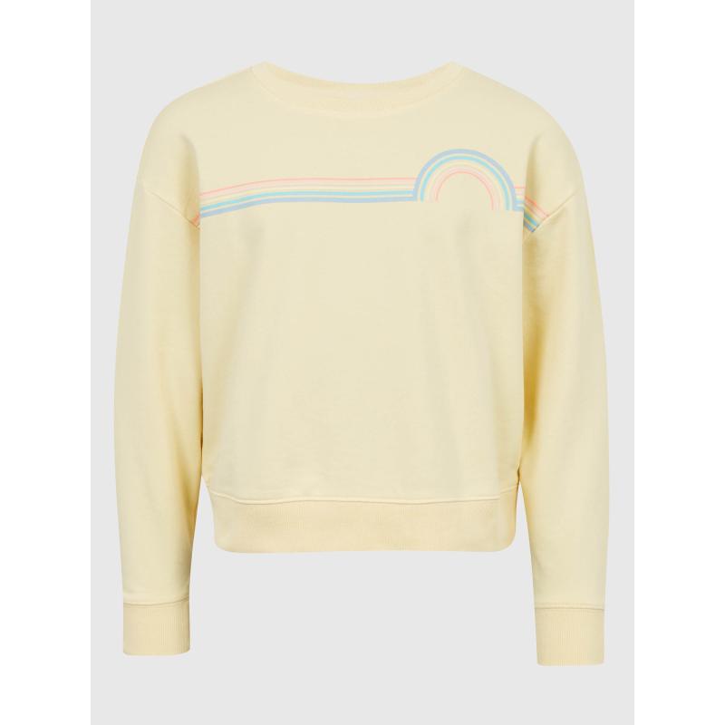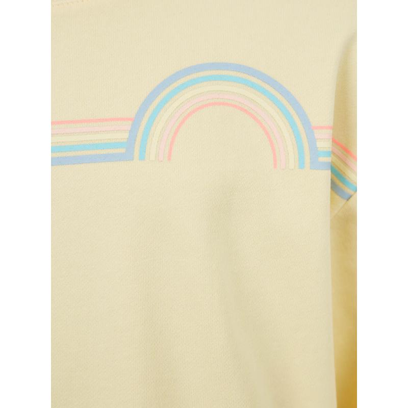 Dětská mikina přes hlavu.Potisk duhy na přední straně.Dlouhé rukávy s náplety.Kulatý výstřih a spodní lem s nápletem.9% recyklovaný polyester. 77 % bavlna, 14 % polyester, 9 % recyklovaný polyester