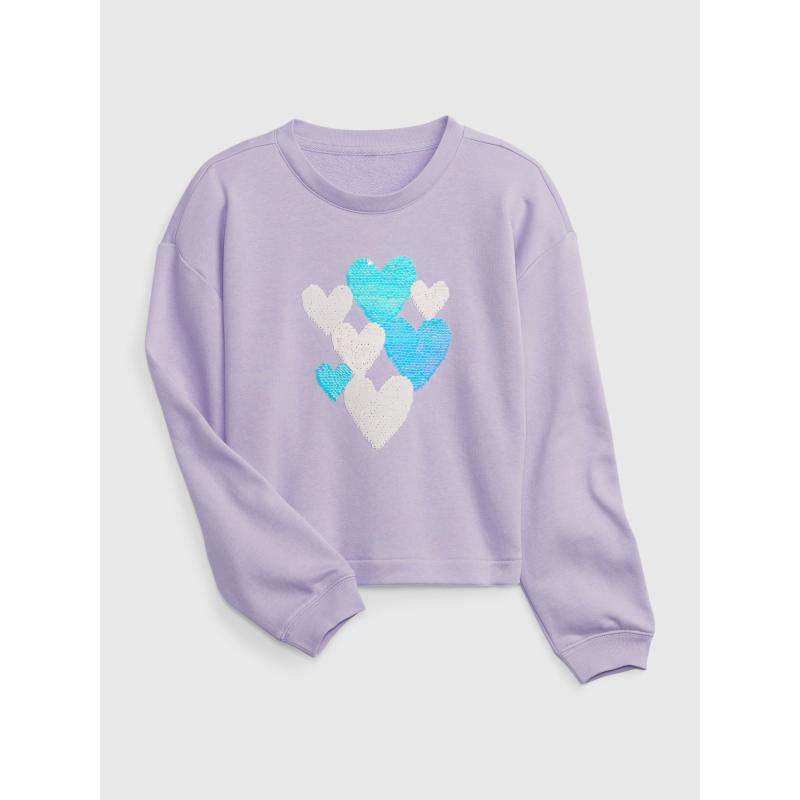 Dětská mikina přes hlavu.Na přední straně srdce z flitrů.Flitry po uhlazení mění barvu.Kulatý výstřih s pružným lemem.Dlouhé spadlé rukávy s náplety.S French Terry.Materiál French Terry se vyznačuje pevnými smyčkami vláken a měkkým povrchem na vnitřní straně a je vhodnější do teplého počasí. 79 % bavlna, 21 % polyester