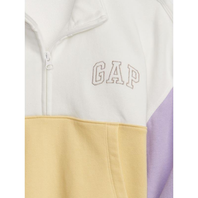 Dětská mikina bez zapínání.U krku stojáček se zapínáním na zip.Logo Gap na přední straně.Prostoná klokaní kapsa.Dlouhé spadlé rukávy s náplety.S příměsí recyklovaného polyesteru.Vícebarevná. 77 % bavlna, 23 % polyester