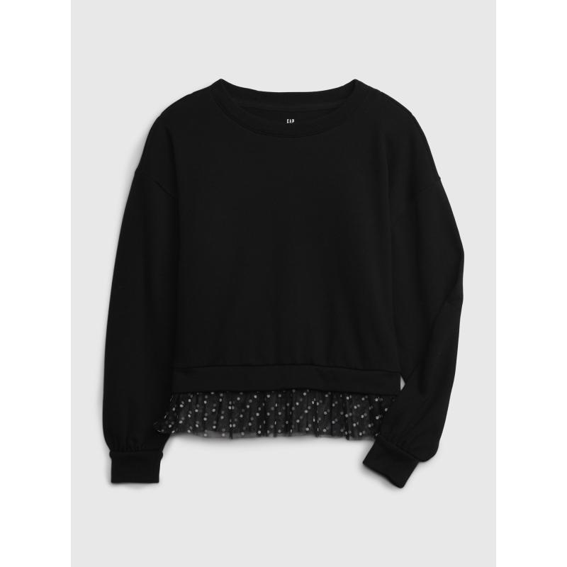 Dětská jednobarevná mikina.Tylová vsadka ve spodní části.Střih přes hlavu.Kulatý výstřih s pružným lemem.Dlouhé spadlé rukávy s náplety.S příměsí recyklovaného polyesteru. 77 % bavlna, 23 % recyklovaný polyester