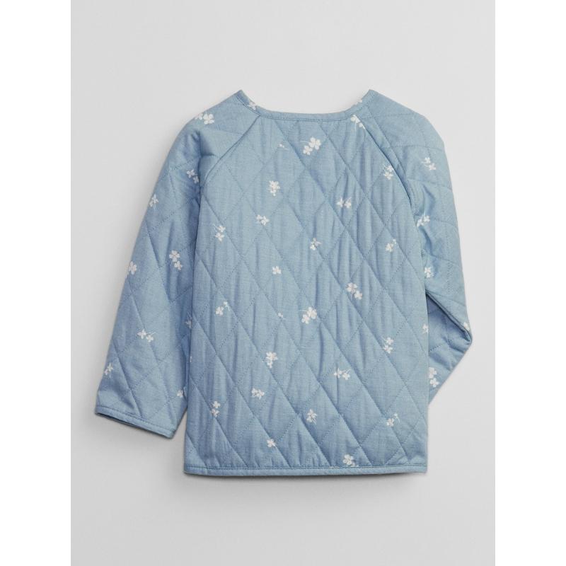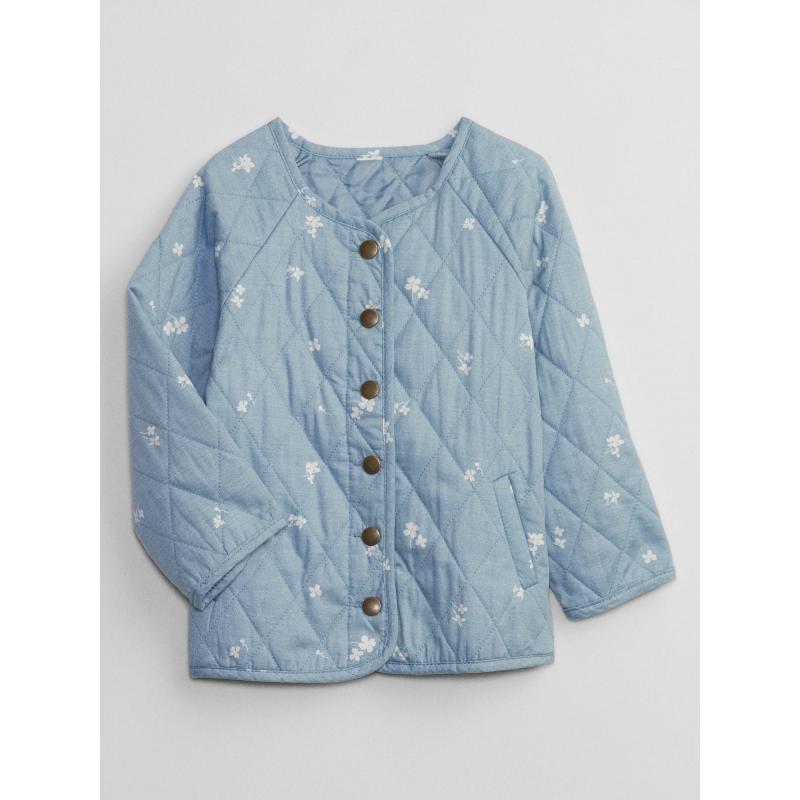 Dětská prošívaná bunda.Drobný květinový vzor.Kulatý výstřih.Dlouhé raglánové rukávy.Rovný střih a zapínání na knoflíky.Přední šikmé kapsy. 100 % bavlna