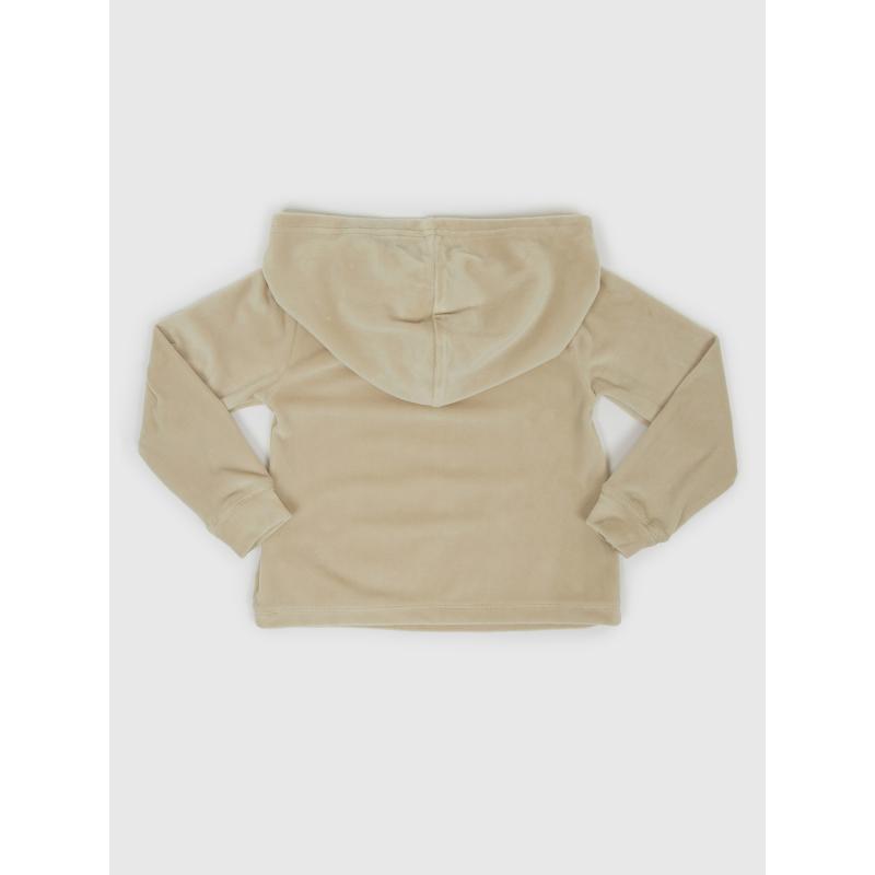 Dětská mikina. Měkký samet s vysokým leskem. Kapuce a rovný střih. Dlouhé rukávy s manžetou. Jednobarevná. 95 % polyester, 5 % elastan
