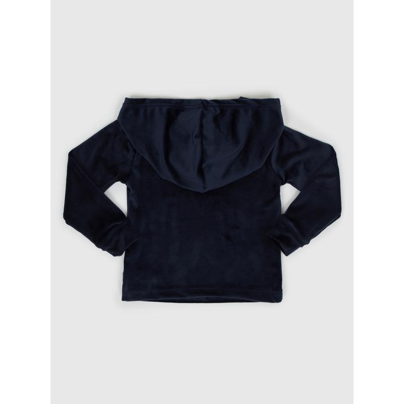 Dětská mikina. Měkký samet s vysokým leskem. Kapuce a rovný střih. Dlouhé rukávy s manžetou. Jednobarevná. 96 % polyester, 4 % elastan