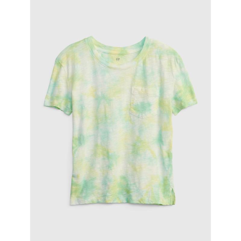 Dětské batikované tričko.Krátký rukáv a kulatý výstřih.Na hrudi našitá malá kapsička.Na boku krátké rozparky.100% organická bavlna. 100 % organická bavlna