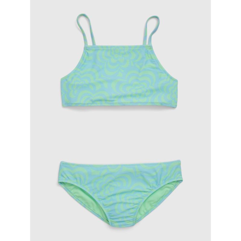 Dětské dvoudílné plavky.Vrchní díl s úzkými ramínky.Klasické plavkové kalhotky.UV ochrana UPF 50+. 66 % polyester, 12 % nylon, 11 % elastan, 11 % metalické vlákno