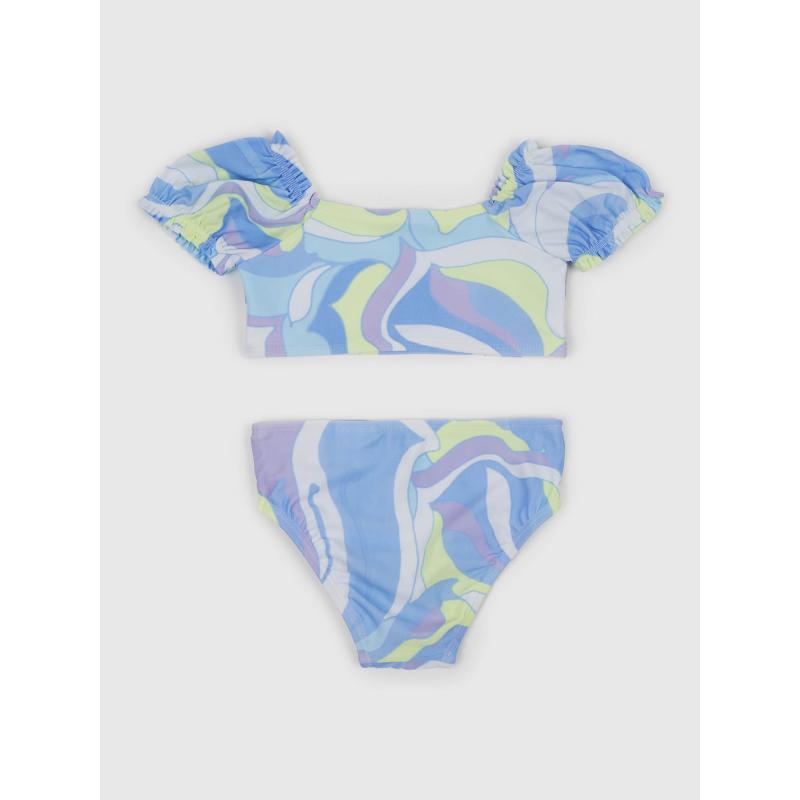Dětské dvoudílné plavky.Vrchní díl s rukávky.Spodní díl plavkové kalhotky.Drobný vzor.Recyklovaný polyester.UV ochrana UPF 50+. 100 % recyklovaný polyester