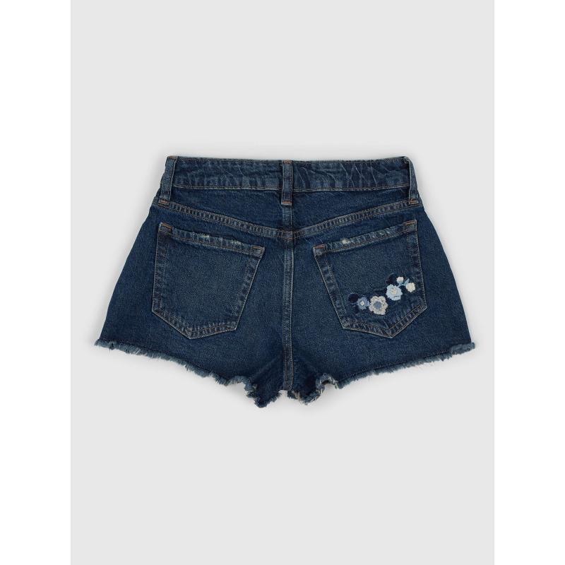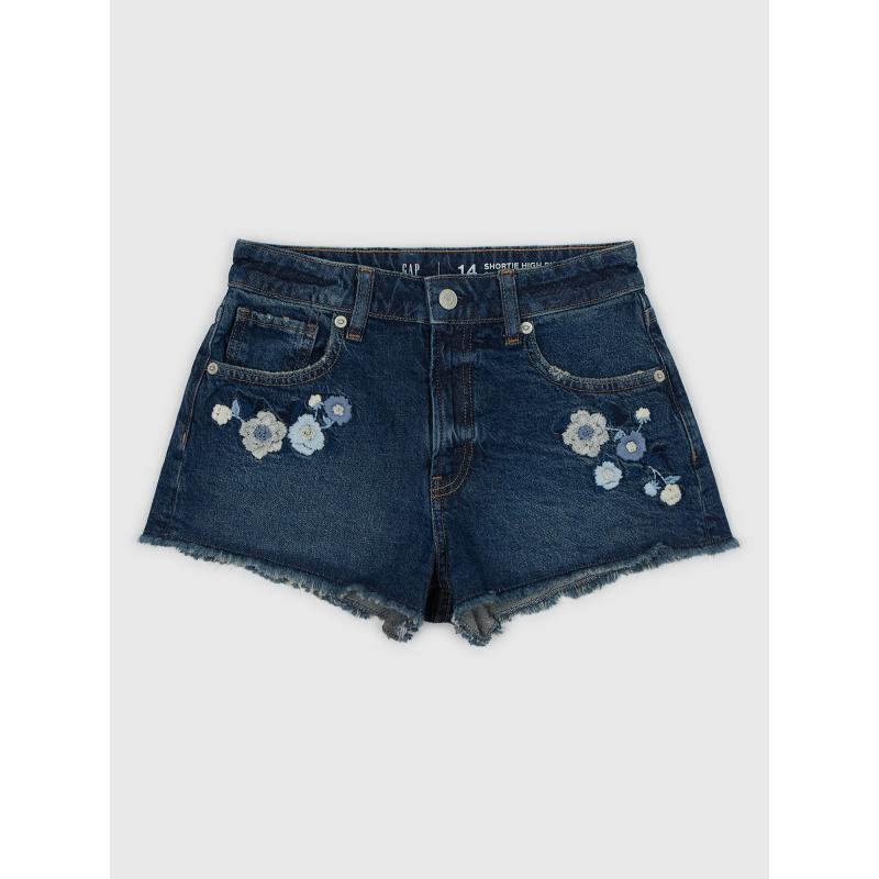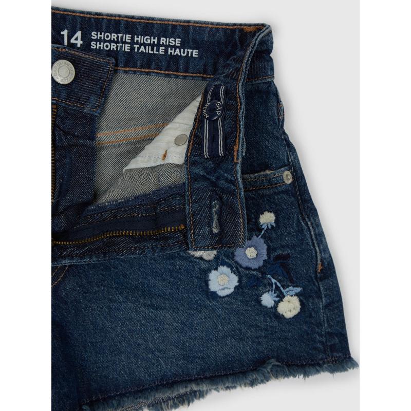 Dětské džínové kraťasy.Středně vysoký pas.Se zapínáním na zip a knoflík.S poutky na pásek.Květinová výšivka. 94 % bavlna, 5 % recyklovaná bavlna, 1 % elastan