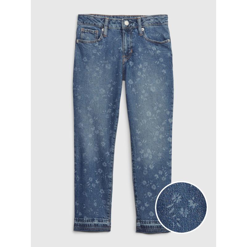 Dětské vzorované džíny.Střih girlfriend.Pevný pas s poutky na pásek.Zapínání na zip a knoflík nebo háček.S 5 kapsami.Drobný plošný vzor. 94 % bavlna, 5 % recyklovaná bavlna, 1 % elastan