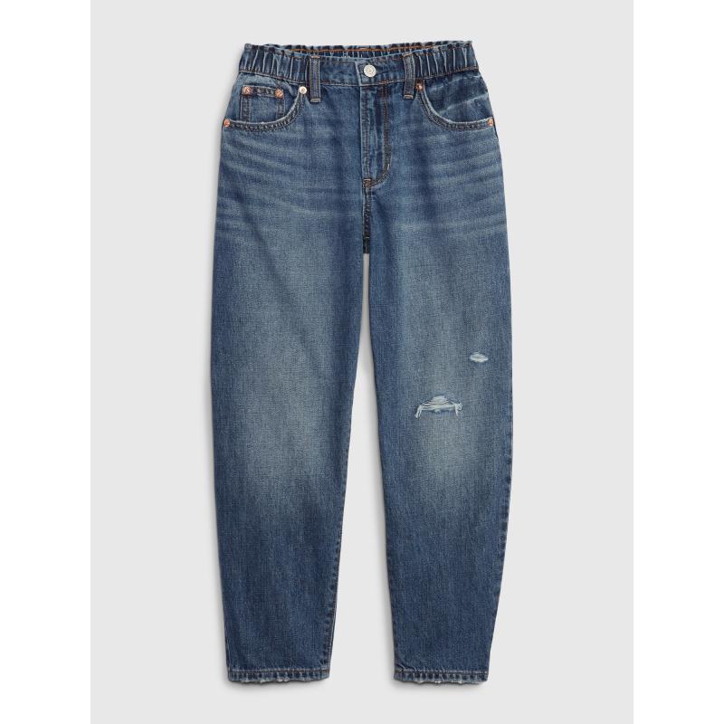 Dětské džíny s vysokým pasem.Pohodlný střih barrel.Moderní vysoký pas.Pružný pas se zapínáním na zip a knoflík.Poutka na pásek.Klasických 5 kapes.5% recyklovaná bavlna.Pogram Washwell. 95 % bavlna, 5 % recyklovaná bavlna