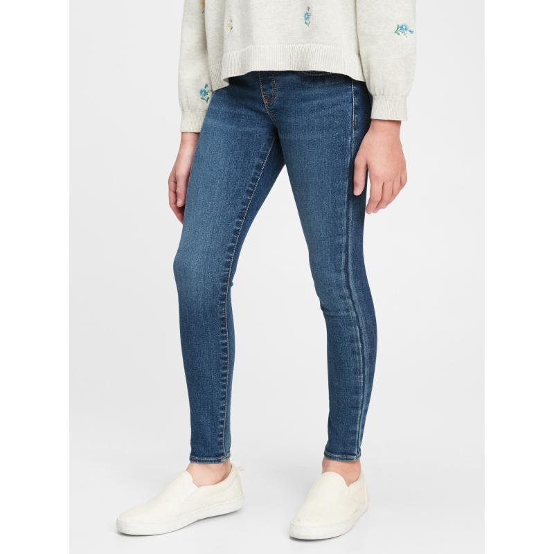 Dívčí natahovací džíny Gap.Pohodlné džíny ve střihu jeggings.Elastický pas, kapsy a poutka na pásek.Příjemný materiál s příměsí 5% recyklované bavlny. 72 % bavlna, 21 % polyester, 5 % recyklovaná bavlna, 2 % elastan